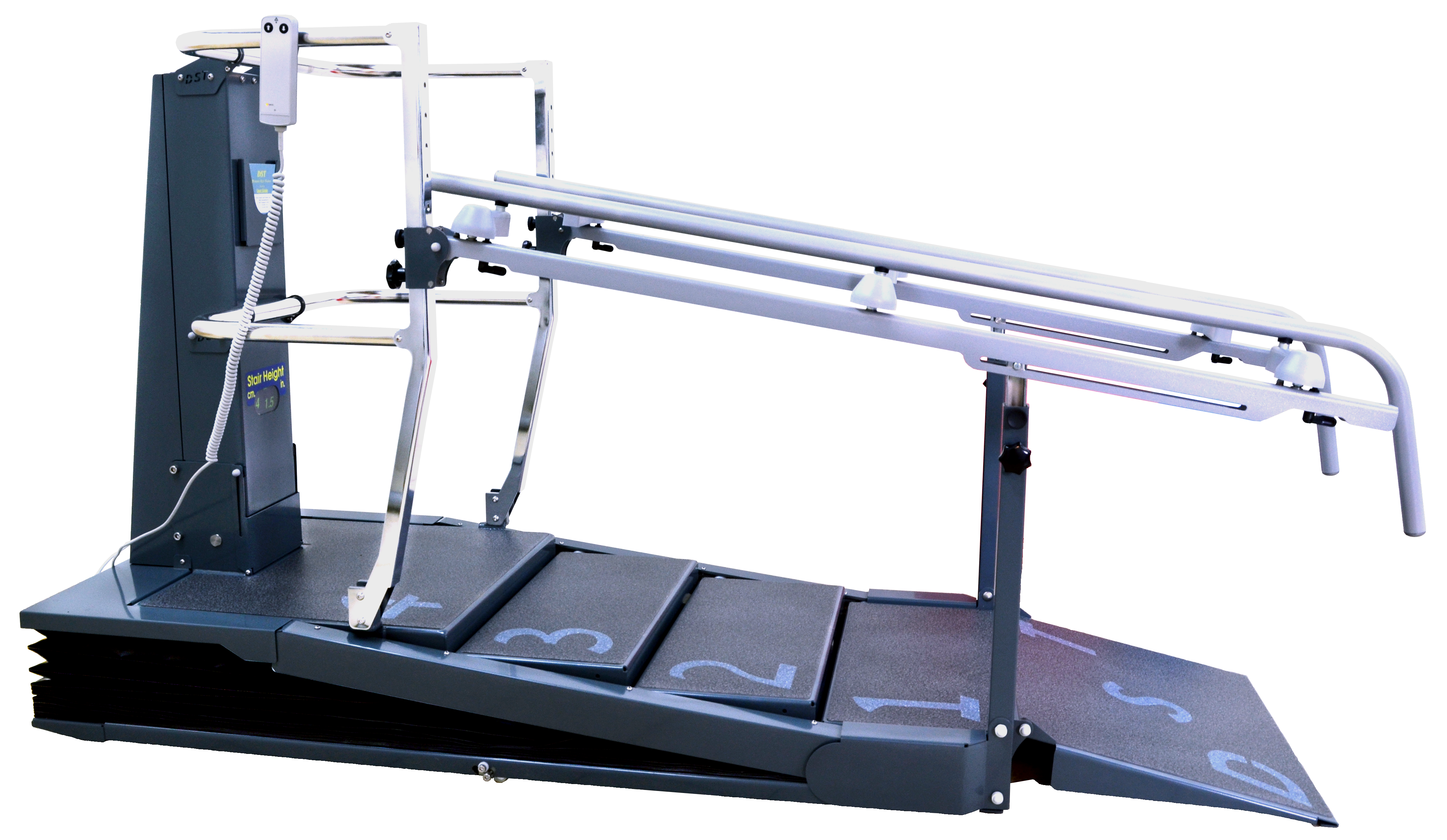 The DST8000 Dynamic Stair Trainer is an innovative device designed for people in various stages of rehabilitation who exercise to regain their ability to use steps and slopes.
