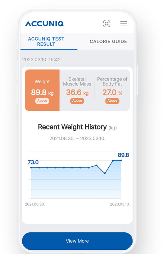 You can save the test results in the app by scanning the QR codeprovided on the ACCUNIQ body composition analyzer result screenor printed result sheet without having to keep the result sheet.