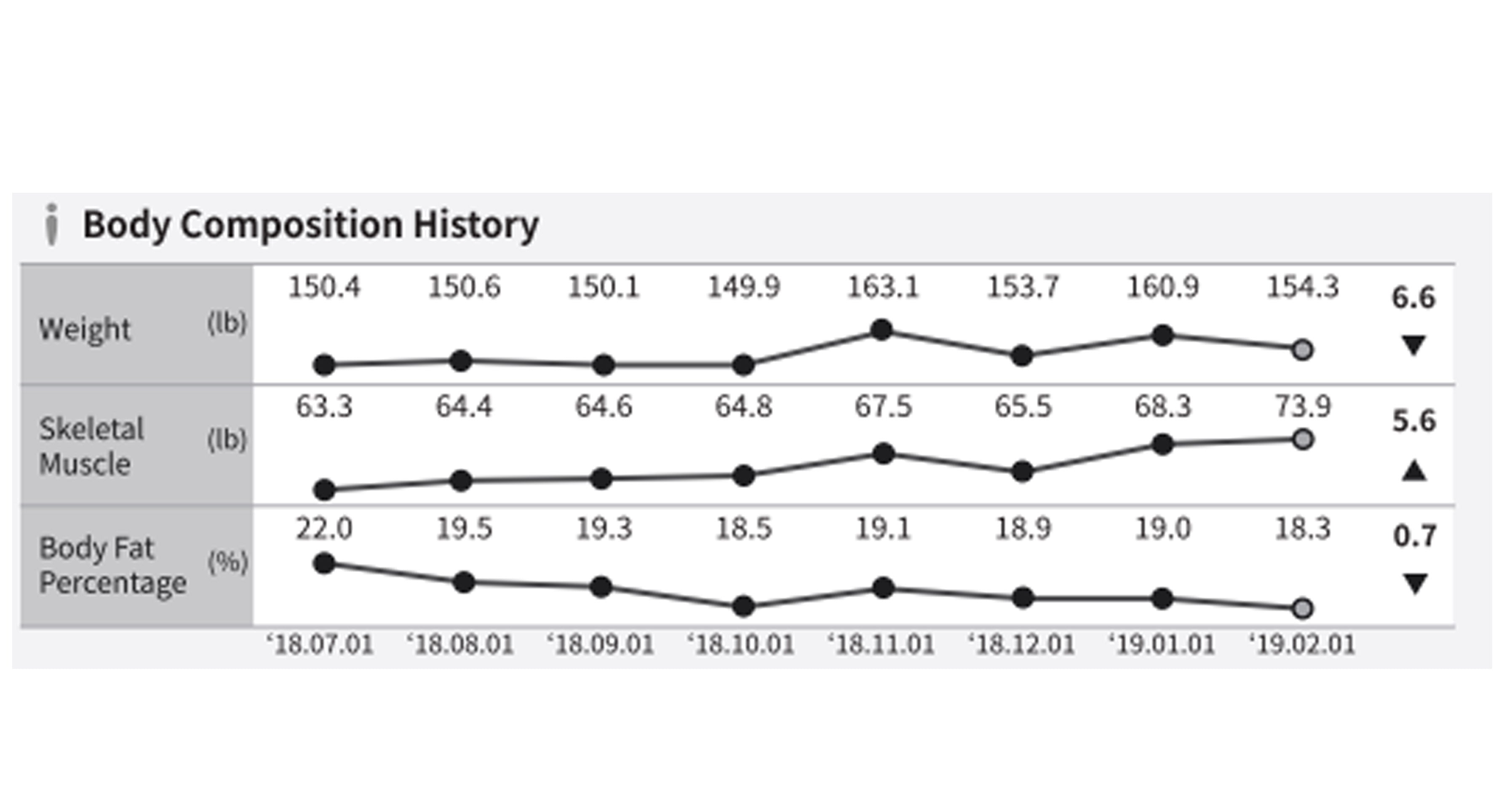 Segmental body composition analysis: Tetra-polar 8 point electrodes system gives accurate measure of segmental body fat and muscle mass.