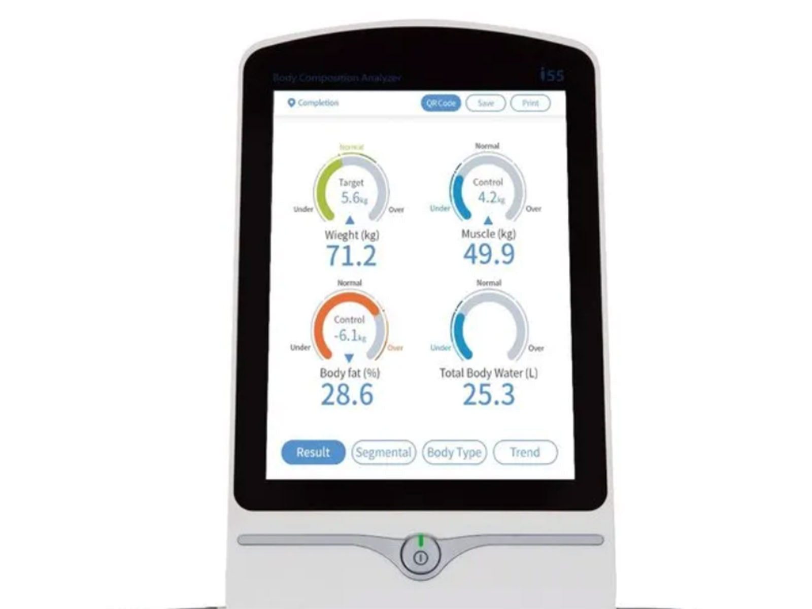 With 6 bioelectrical impedance frequencies the i55 ensures accurate and detailed segmental analyzes.