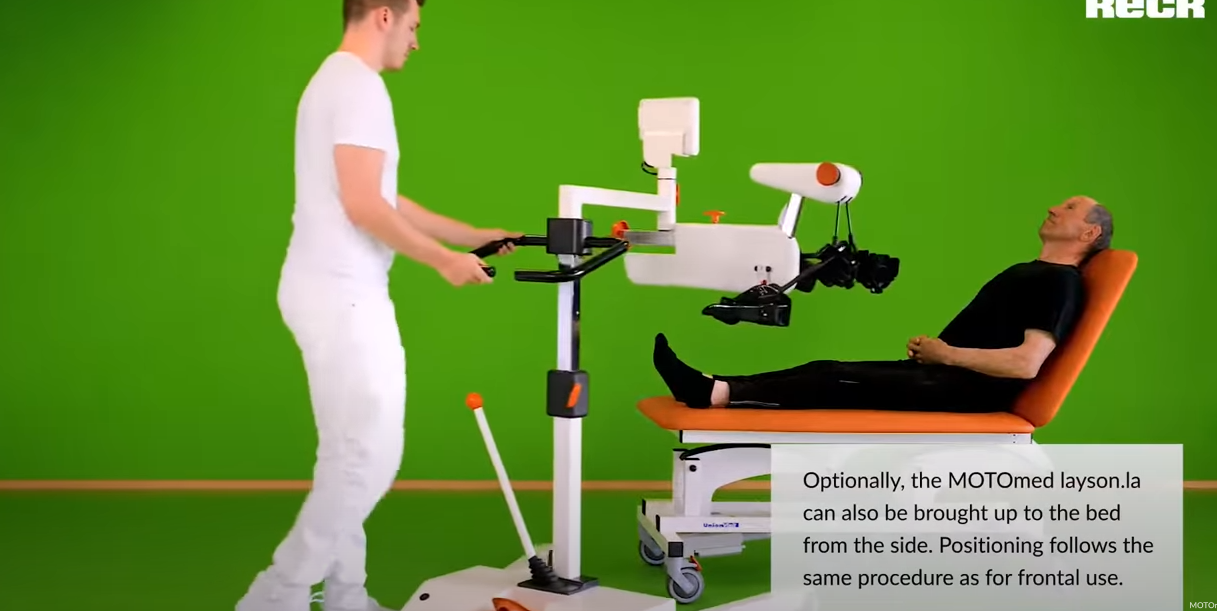 The use of a MOTOmed layson edition model enables a recumbent, possibly comatose person in the intensive care unit a safe form of passive mobilization. In addition, the „ServoCycling“ therapy aid can be used while the patient is awake to provide assistive training adapted to the patient‘s condition, even with minimal muscle strength. This leads to a considerable increase in motivation and consent to further rehabilitation.
